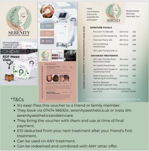 You and a friend can both save £10 off one treatment each when they book as a result of your recommendation. As a thank you, the voucher is valid for ANY treatment and can be combined with ANY special offer. Book Now!